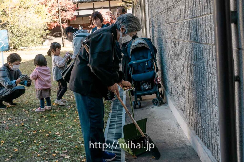 早朝7時30分、マイクロバスで美拝を出発。午前10時50分に詰所に到着し、仙田康史夫妻と合流しました。この日はちょうど「ほこてん」と称するイベント日で、美しく色づいたいちょう並木が歩行者天国となり、おぢば周辺の道路渋滞が予想されたため、詰所で昼食をいただいてから本部へ向かいました。