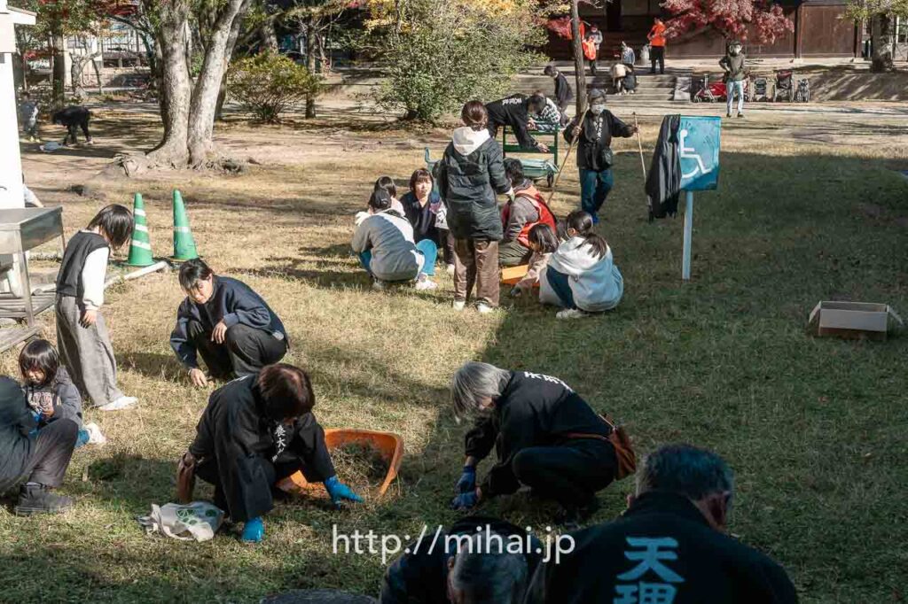 午後2時に作業を終え、マイクロバスで参考館のある真南棟へ移動。教祖140年祭記念展示「おやさま」を拝観させていただきました。教祖伝逸話篇に登場する教祖お手作りの猿や子犬、教祖が琴を習うよう勧められて買い求めたお琴や三味線、監獄署でおやすみになられた際に枕にされた下駄など、数々の貴重な品々が展示されていました。子どもたちにそれらにまつわるお話を説明する大人の姿があちこちで見られ、信仰を次世代へ伝える温かい光景が印象的でした。