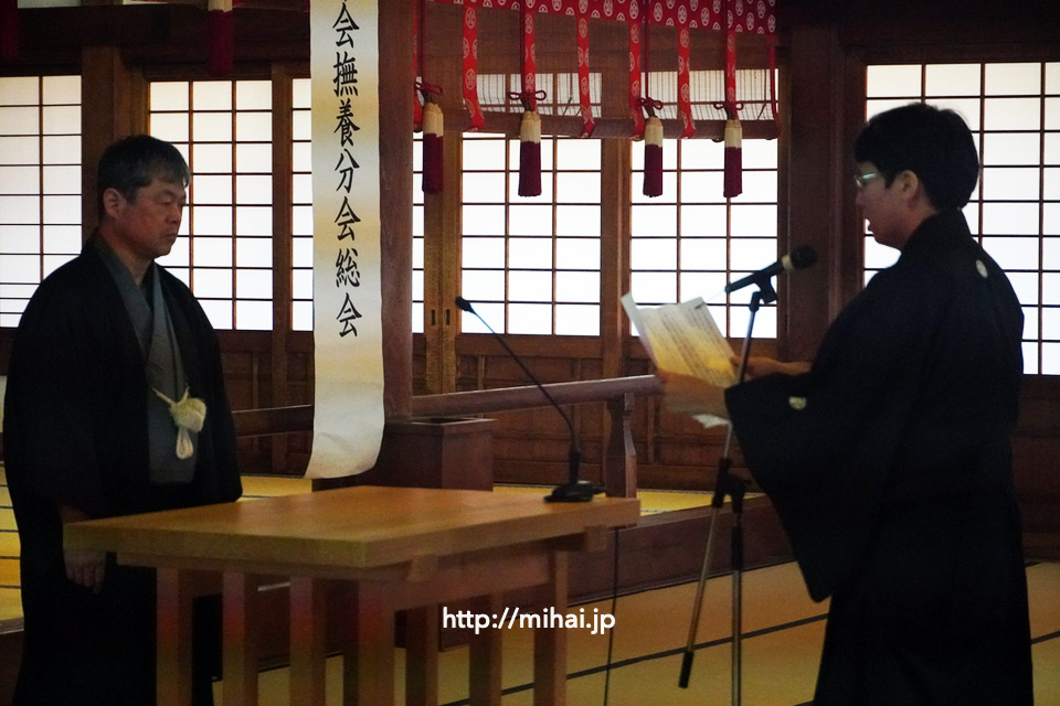総会は、教祖140年祭へ向けての三年千日の旬における基本方針「心を澄ます毎日を」のもと、親神様、教祖様にお喜びいただけるよう、12下りのてをどりづとめから始まりました。