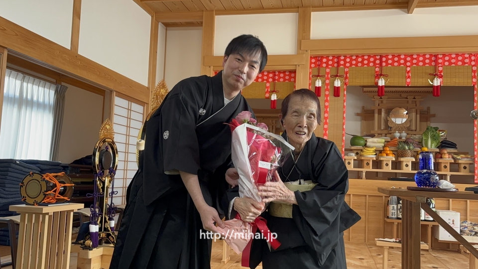 その後、サプライズで壱岐藤子五代会長に花束が贈られました。藤子前会長からは、会長としての30年間の感謝、特に上級西香川分教会長様の丹精に対する深い感謝の言葉が述べられ、会場は温かい雰囲気に包まれました。